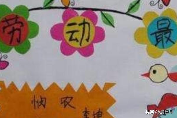 2、大题目劳动最光荣这几个字用花环围起来,下方的图画,左边画一个小男孩,右边画一个小女孩,他俩都在劳动。